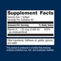 | Vitamin D (as cholecalciferol) | 125 mcg (5,000 IU) | 625% |